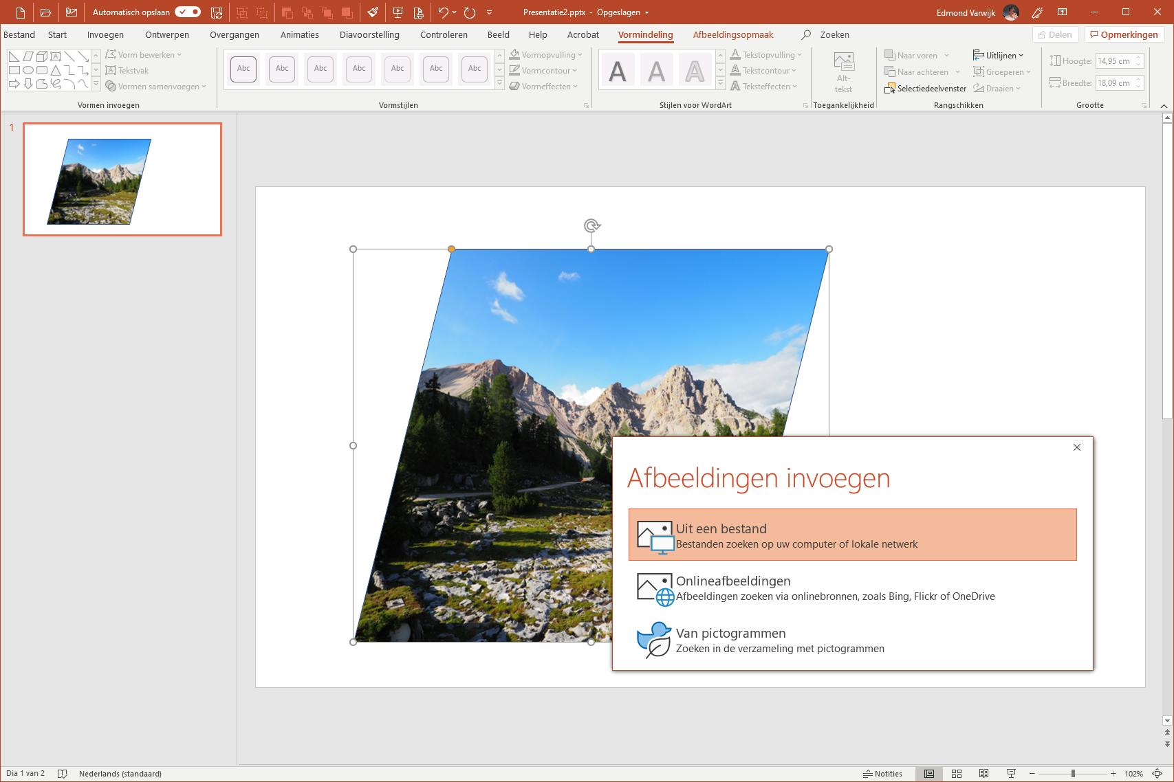 Wil je zelf grafische verbeteringen aan een presentatie toevoegen, dan zijn daar genoeg mogelijkheden voor in PowerPoint. Je moet ze alleen weten te vinden, want vaak zijn het opties die je op het eerste gezicht niet direct koppelt aan het opmaken van een presentatie. Bovendien zijn veel mogelijkheden niet direct zichtbaar, maar worden pas actief wanneer je een foto of tekst selecteert. De reden hiervoor is dat Microsoft haar programma’s niet te complex wil maken en derhalve bepaalde functies wegstopt in menu’s die pas zichtbaar worden als ze ook echt relevant zijn. Heb je wat minder ervaring met PowerPoint, of Office 365 in het algemeen, dan is dat in het begin even wennen.