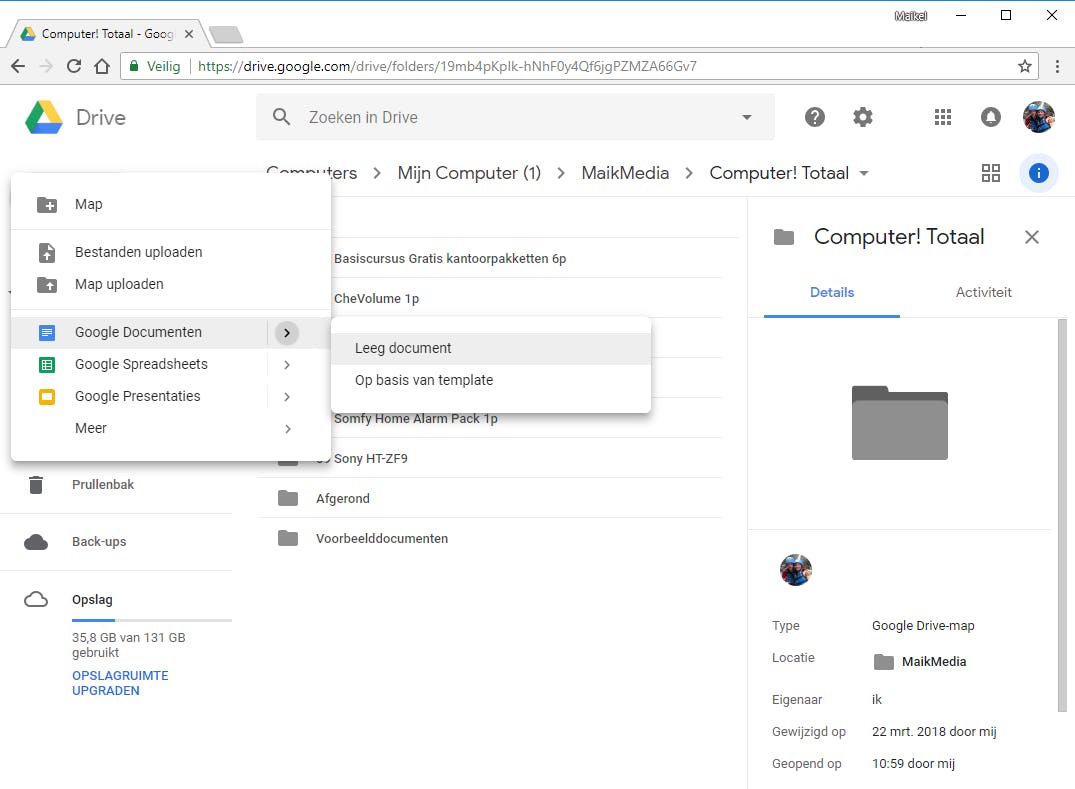 Naast Microsoft bestaat er nog een grote aanbieder van online kantoorapplicaties, namelijk Google. Je hebt hiervoor een Google-account (Gmail-adres) nodig. Surf met een desktopbrowser naar www.google.com/drive en log via Naar Google Drive in met je accountgegevens. Heb je al eens eerder documenten in Google Drive opgeslagen, dan vind je ze hier terug. Je maakt net zo gemakkelijk een nieuw document aan. Klik linksboven op Nieuw en maak een keuze tussen Google Documenten, Google Spreadsheets en Google Presentaties. Via Leeg document verschijnt er een blanco werkveld. Als alternatief kies je voor Op basis van template, zodat je het document niet helemaal zelf hoeft op te bouwen. Nuttig voor het geval je bijvoorbeeld een cv, sollicitatiebrief, reisplanner of begroting wilt opmaken. Op het gebied van functionaliteit kan het online kantoorpakket van Google prima wedijveren met Office Online. Zo heb je keuze uit honderden lettertypes en rekenformules. In tegenstelling tot enkele jaren geleden ondersteunt Google alle gangbare bestandsindelingen van Microsoft. Bestanden met een MS Office-indeling bewaar je zowel online als lokaal. Je gebruikt beide online pakketten dus zo nodig naast elkaar, al is er nog altijd een kans op fouten, vooral in documenten met veel opmaak.