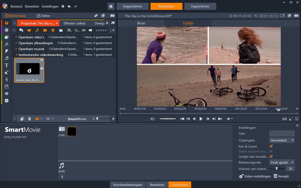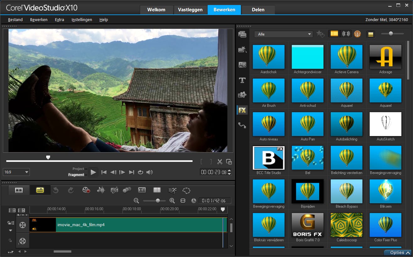 Ook voor bezitters van een Mac valt er genoeg te kiezen. Zo zijn meerdere besproken pakketten voor macOS beschikbaar. Apple heeft daarnaast zijn eigen gratis videobewerker, namelijk iMovie. Je importeert binnen dit programma 4K-beelden en voegt hieraan titels, muziek en speciale effecten toe. De beschikbare filters zien er erg gelikt uit, waarmee je montage een filmachtige uitstraling krijgt. Om actiemomenten nauwkeurig vast te leggen, is er ook een slowmotion-functie. iMovie is zowel voor macOS als iOS beschikbaar. Je kunt dus op een iPhone of iPad aan de bewerking beginnen, waarna je het project afmaakt op een Mac. De versie op macOS heeft meer gereedschappen in huis. Houd er rekening mee dat iMovie een beperkt aantal videoformaten ondersteunt. Apple beheert met Final Cut Pro X ook een professionele videobewerker. Dit pakket kost 329,99 euro.