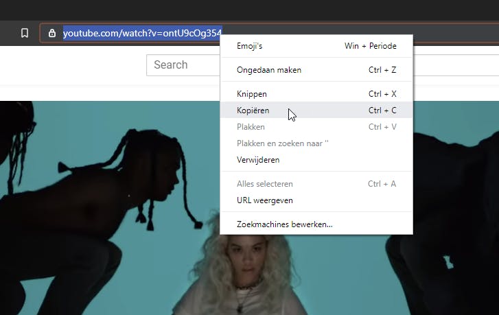 4. In het volgende venster word je gevraagd de url van de onlinevideo in te voegen. De url is het adres van de website met het adres van de video erbij. Hiervoor open je een browser, ga je bijvoorbeeld naar YouTube en zoek daar de video van je keuze. Selecteer het hele adres in de adresbalk van de browser, en kopieer het naar het geheugen van de computer.