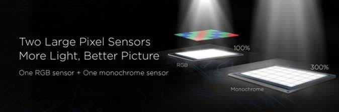 De Huawei is de eerste smartphone met zowel een kleuren als zwart-wit camera.