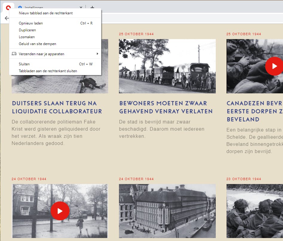 Verder kun je vanuit dit menu onder andere geopende tabbladen sluiten en het actieve tabblad opnieuw laden.