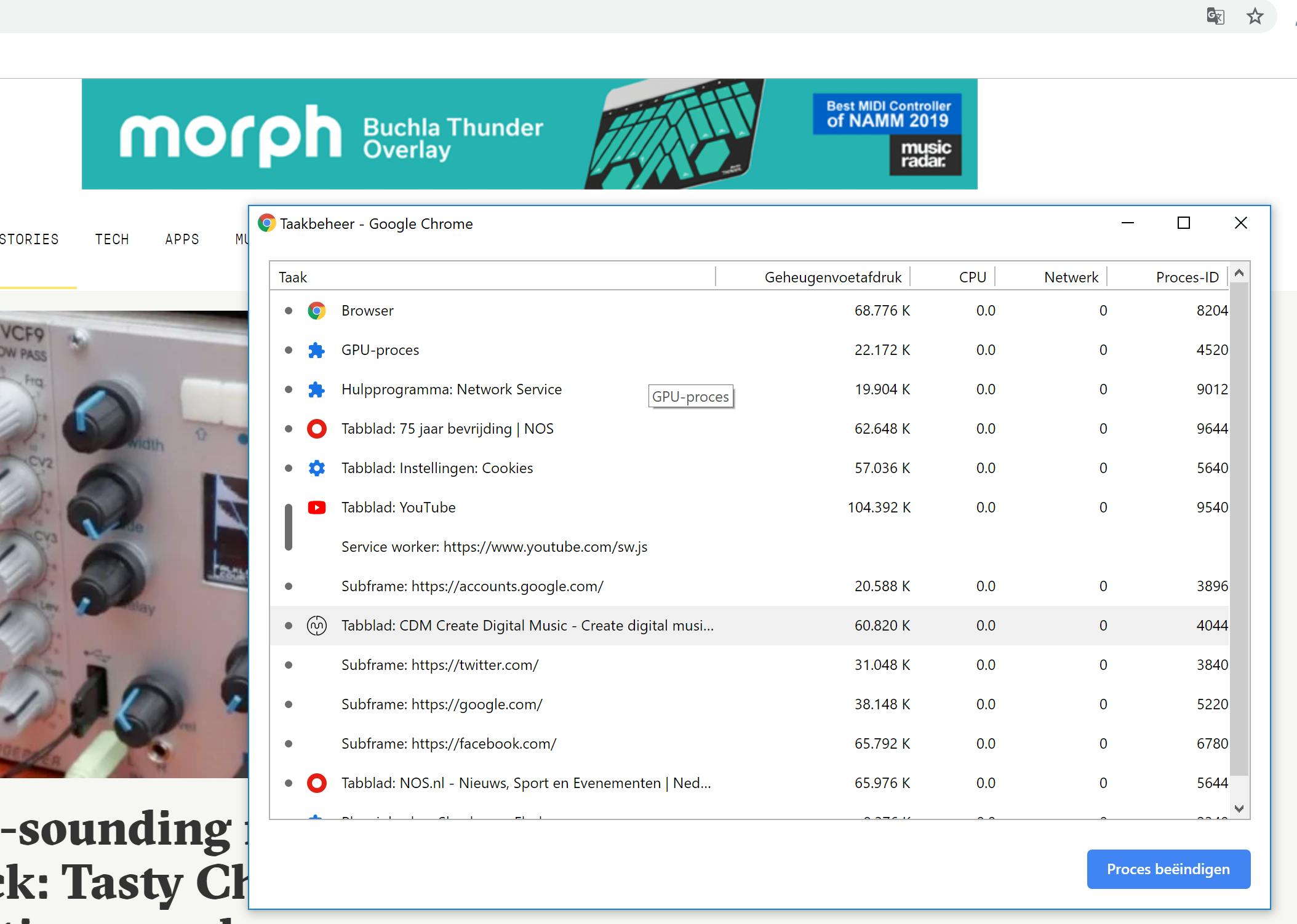 Het Taakbeheer van Chrome laat zien welke processen de browser op dat moment gebruikt