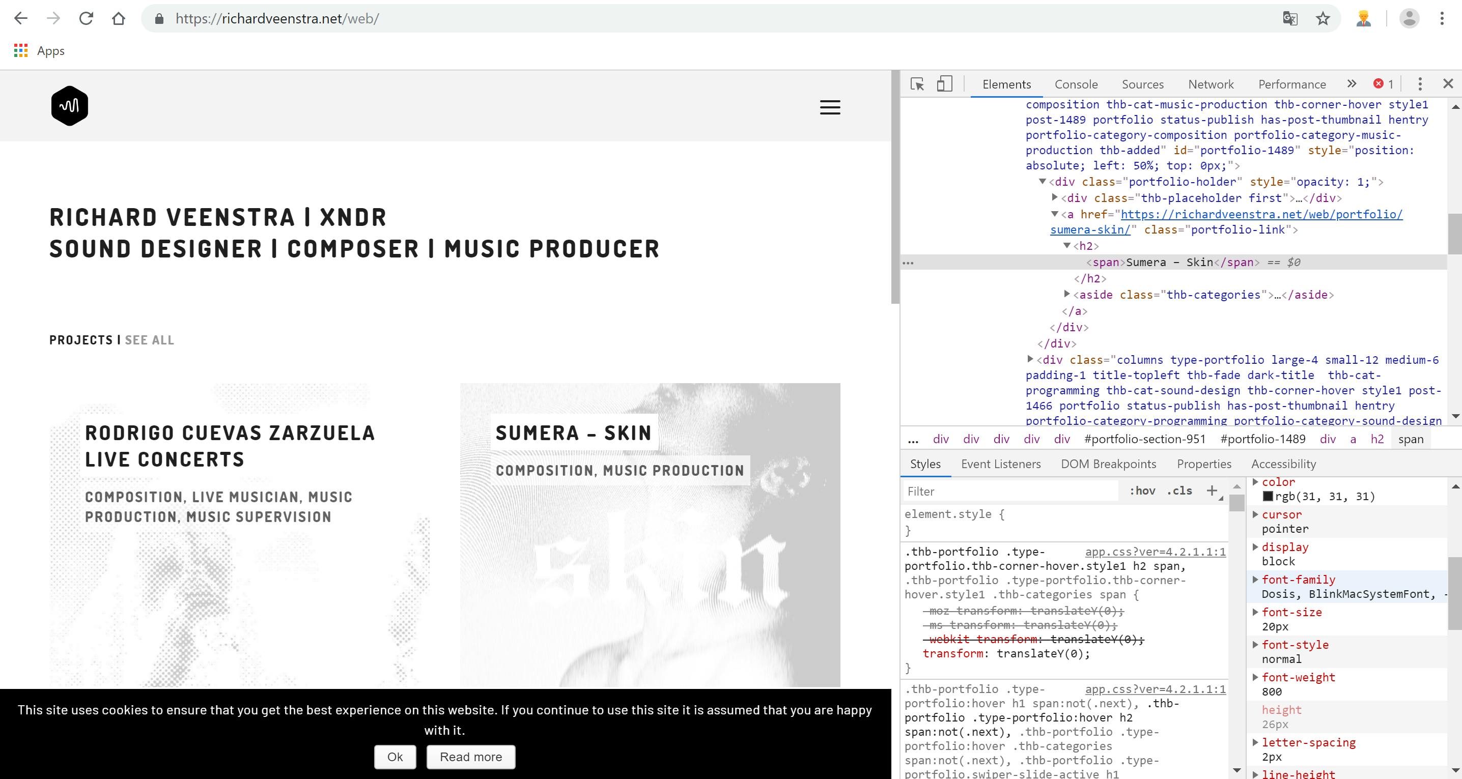 Het inspecteren van de broncode van een website is een functie die vooral veelgebruikt wordt door webdesigners. Je kunt hiermee de html-bron van een website tot in detail bekijken. Zo kun je zien hoe een site is opgebouwd en welke lettertypen er zijn gebruikt. Om die broncode te bekijken, klik je met je rechtermuisknop op een element van de pagina en kies je voor Inspecteren. Een aantal vensters aan de rechterkant worden getoond. Bovenaan, onder Elements, zie je de code van het element, eronder bij Styles, zie je de eigenschappen. Zoek nu rechtsonder bijvoorbeeld naar de tekst font-family om te weten te komen welk lettertype voor het specifieke element op de site is gebruikt.