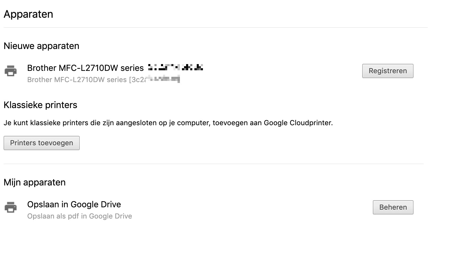 Ga naar het instellingenmenu in Chrome en klik op Geavanceerd. Onder Afdrukken kies je voor Google Cloudprinter. Kies voor de optie Cloudprinter-apparaten beheren waarna een nieuw tabblad wordt geopend. Als je apparaat wordt ondersteund, zie je het hier staan. Klik op Registreren en doorloop de configuratie. Ga hiernaartoe om meer informatie over Google Cloud Print te lezen. Wees je er wel van bewust dat de documenten die je via je Google-account naar een printer stuurt, dan wel niet door Google gelezen worden, maar nog altijd wel je thuisnetwerk verlaten.