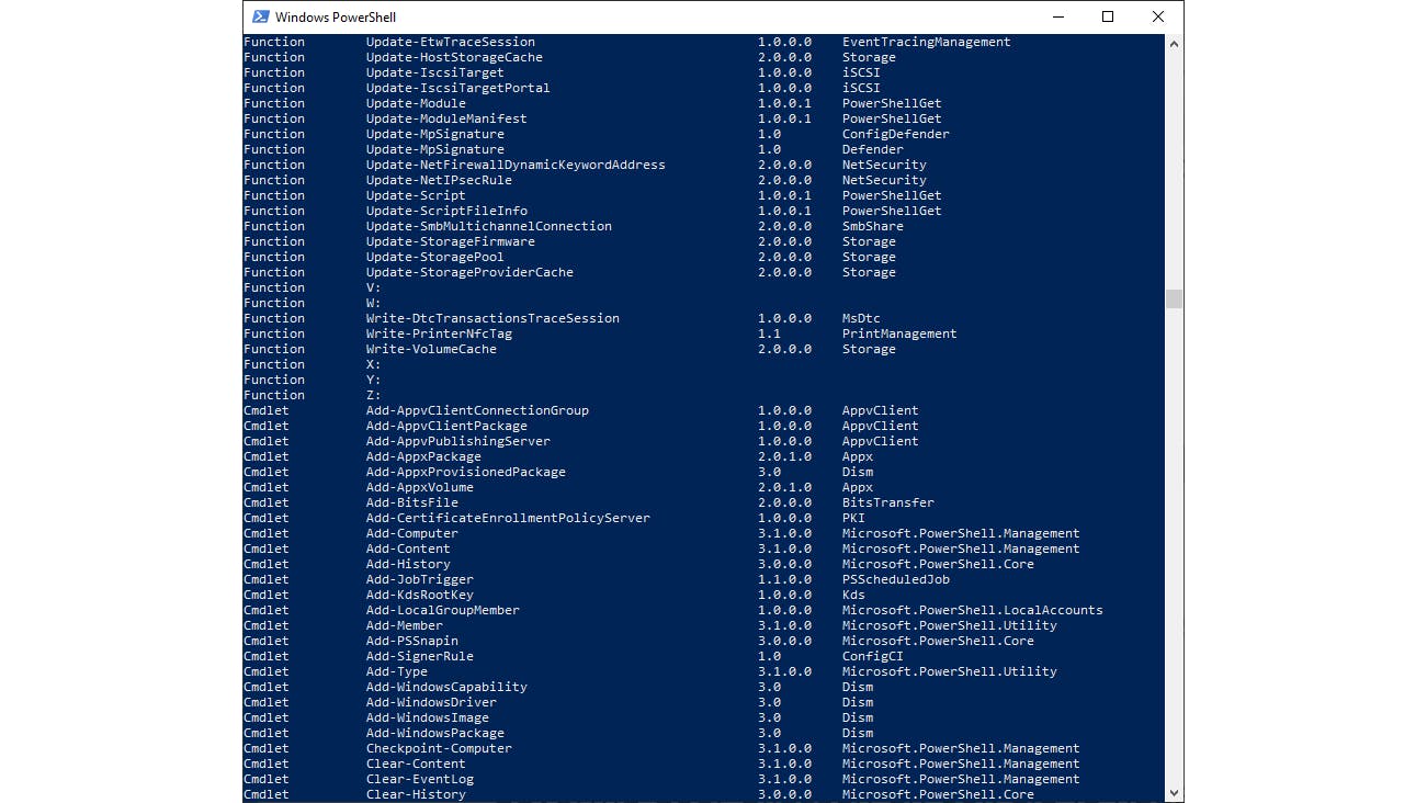 We hebben nu een globaal idee van het verschil tussen PowerShell en Opdrachtprompt, en we weten hoe we hulp kunnen vragen. Maar hoe zit het eigenlijk met de opdrachten die we kunnen geven? Anders gezegd: welke cmdlets heeft PowerShell in huis?
