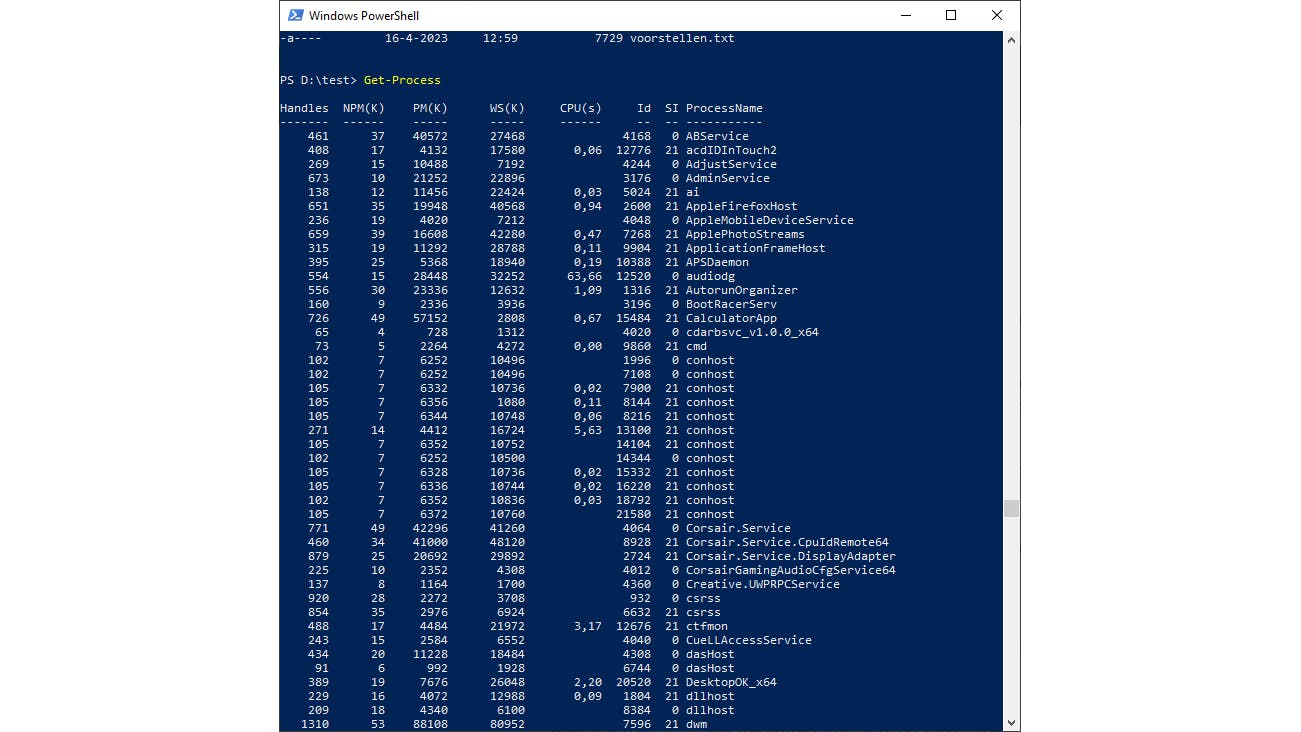 PowerShell biedt verschillende opdrachten die een alternatief vormen voor functies die je doorgaans via Windows zou gebruiken. Neem bijvoorbeeld het opvragen van een lijst met actieve processen waarvoor je anders Taakbeheer zou openen. In PowerShell kun je zo’n lijst opvragen met Get-Process.