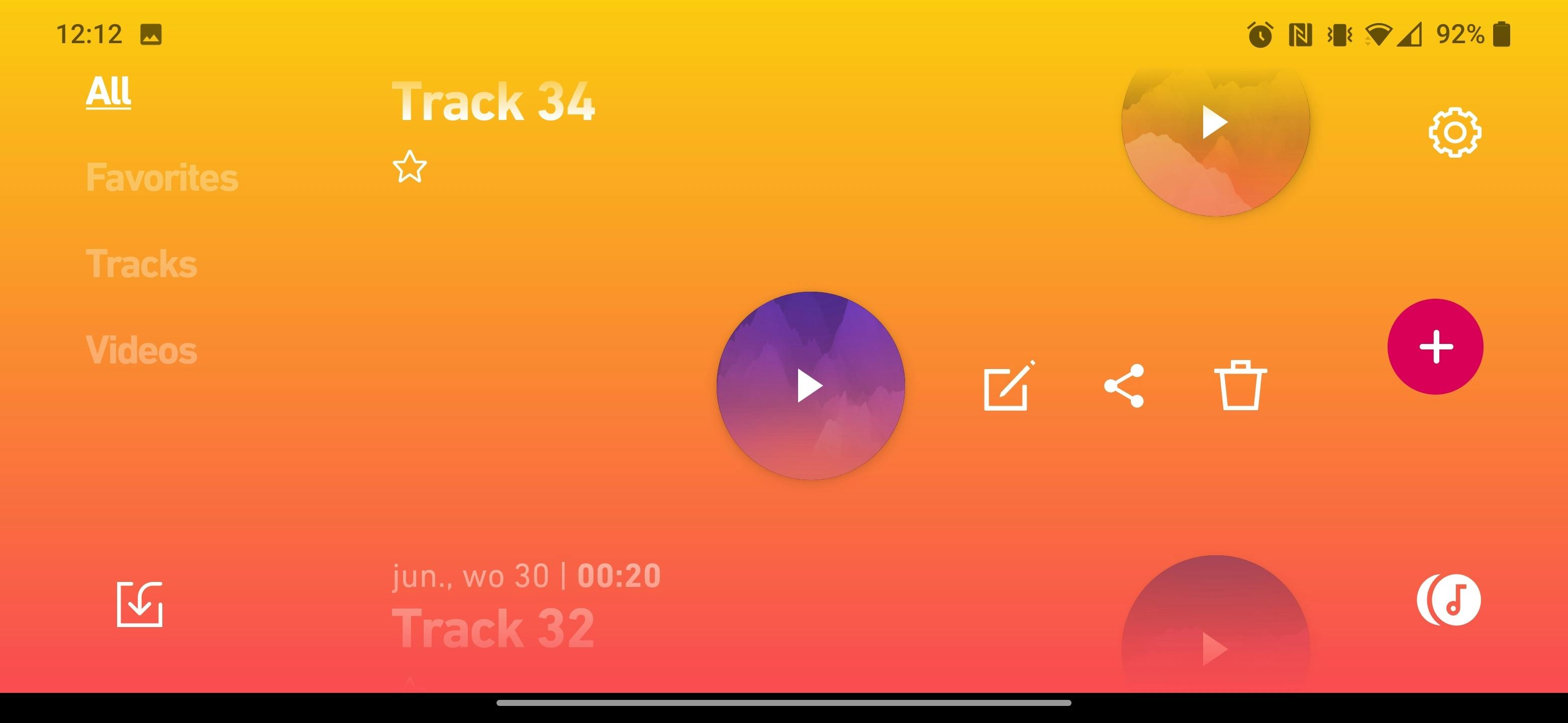 Zowel op het hoofdscherm als in de lijst met opnamen veeg je naar links over een geluidsopname om drie pictogrammen te zien. Tik op het pennetje om de track een duidelijke naam te geven, zodat ook te zien is wat je te horen krijgt. Of gebruik de prullenbak om het exemplaar te verwijderen. Via het deelpictogram bewaar je de opname lokaal op jouw telefoon of deel je deze op bijvoorbeeld Instagram. Wil je ook de kleurrijke animatie bewaren? Kies dan Save video in plaats van Save audio.