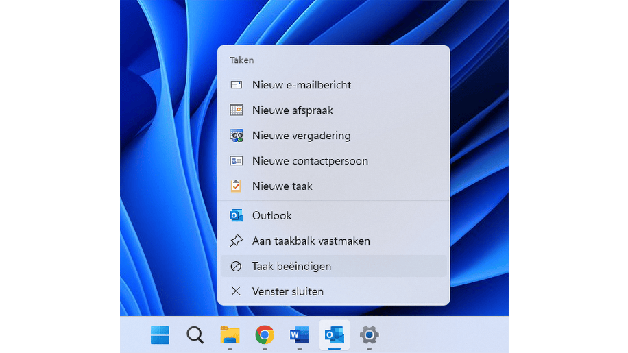 Voeg de optie Taak beëindigen aan het contextmenu van de taakbalk toe.