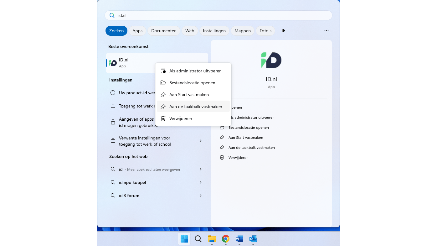 Voeg het pictogram van ID.nl of een andere webdienst aan de taakbalk toe.