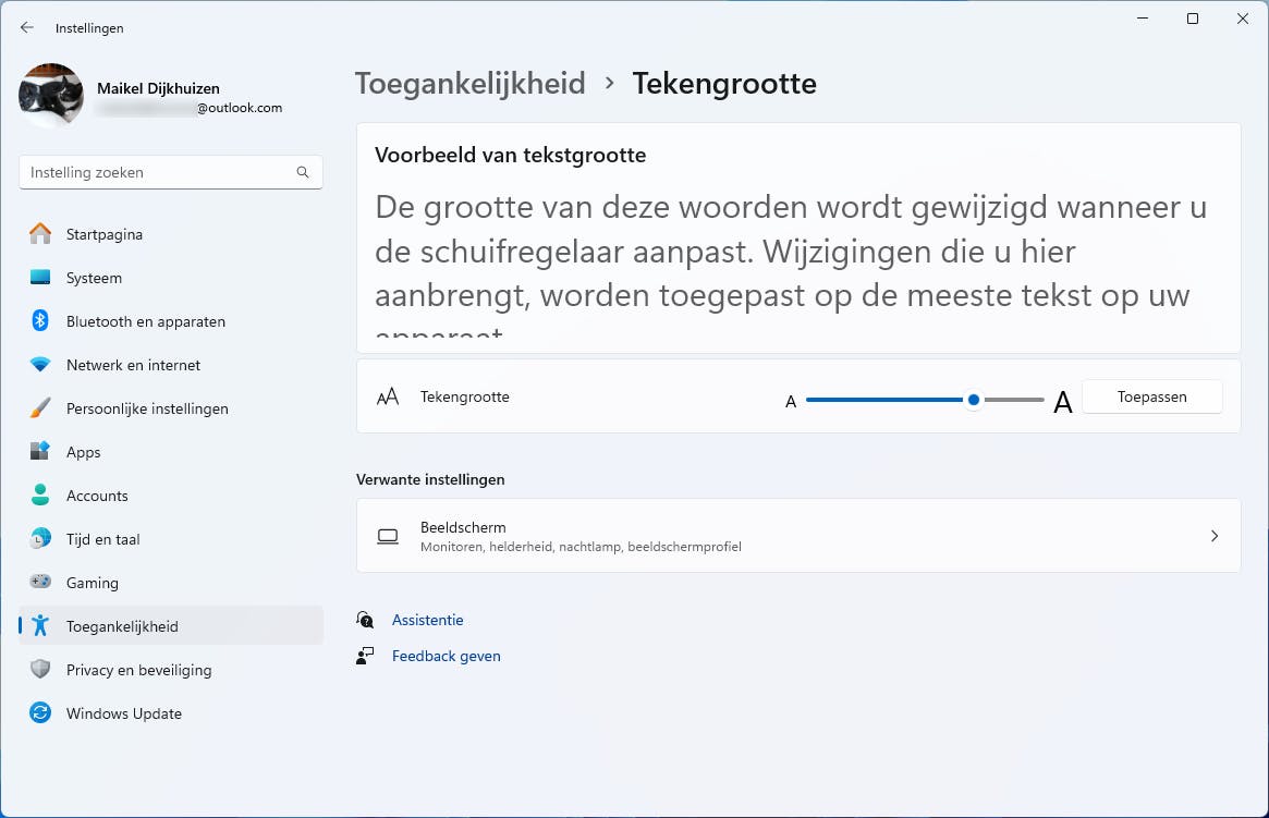 Verhoog met grotere letters de leesbaarheid in Windows 11.