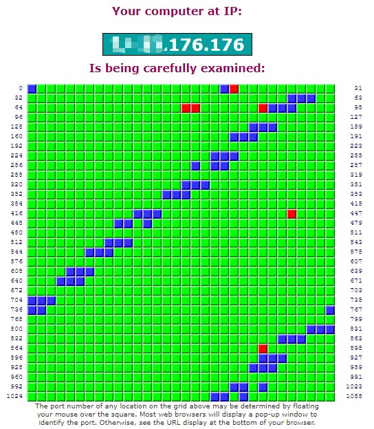 Even later verschijnt voor elke poort het resultaat: een roodgekleurd vakje wijst op een open poort, een blauw duidt weliswaar een gesloten poort aan, maar nog veiliger zijn de groene vakjes. Dat zijn namelijk ‘stealth-poorten’ die helemaal niet reageren op binnenkomende datapakketjes). Klik zo’n vakje aan om meer feedback te krijgen over de typische services en potentiële kwetsbaarheden.
