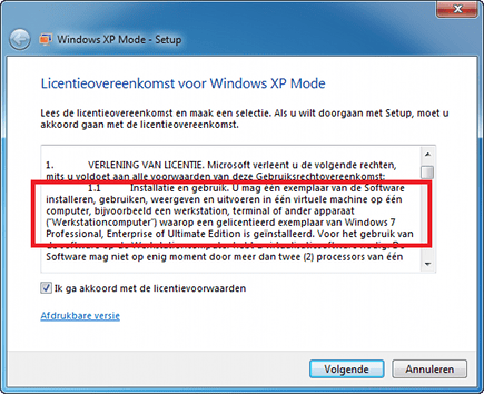 Overigens kunnen alleen gebruikers van Windows 7 Professional en Windows 7 Ultimate XP Mode gebruiken. De XP-licentie in de virtuele machine is gratis voor gebruik onder de genoemde Windows 7-versies.