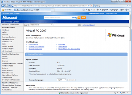 Volg de stappen op de Virtual PC-website om de software te installeren.