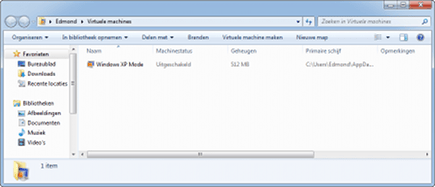 In het Startmenu is nu onder Alle programma's / Windows Virtual PC het programma Windows Virtual PC te vinden (en ogenschijnlijk ook XP Mode, maar dit is slechts schijn, want een klik op dit menu-item zorgt voor een foutmelding). Als u Virtual PC start, wordt de folder Virtuele Machines geopend. Klik op Virtuele Machine maken.