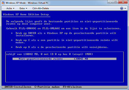 De installatie van XP in een virtuele machine verschilt niet van die op een echte pc.