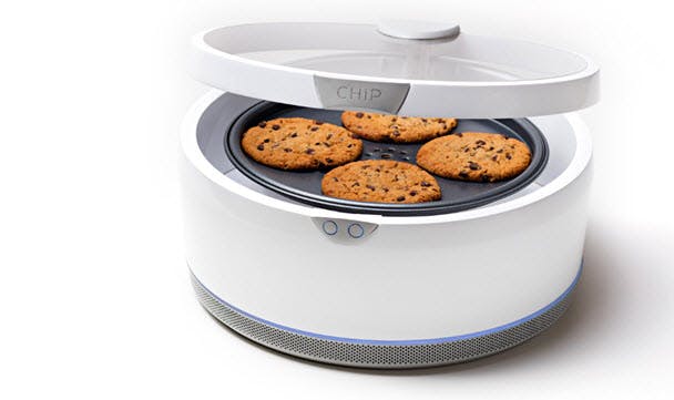 De Chip Smart Cookie Oven kun je nog het beste omschrijven als de Senseo voor koekjes. Je koopt een set Cookie Pods (het koekjesequivalent van de koffiepad) en die plaats je in het apparaat. Tien minuten later zijn je koekjes klaar. Op zich een tof concept, ware het niet dat je maar vier koekjes tegelijk kunt bakken, koekjes maken helemaal niet ingewikkeld is, en ze in een gewone oven net zo snel klaar zijn. Daarbij kunnen we voor 215 euro een verdraaid goede normale oven kopen.