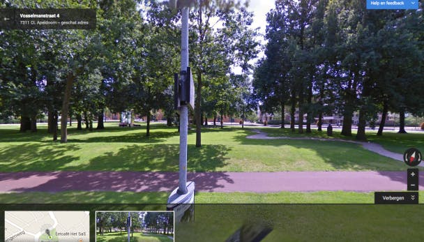Klik op de Street View-foto om vooruit, achteruit, naar links of naar rechts te gaan of zoom in en uit met de knoppen rechtsonder. Onderin vind je een werkbalk van waaruit je meteen terug kunt keren naar de kaart. Deze hele lijst verberg je door rechts op Verbergen te klikken. Draai met de virtuele camera door te klikken en te slepen met je muis. Je kunt zich zo van praktisch elke locatie een beeld vormen van de omgeving.