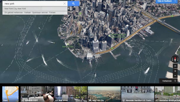 Tip 02 Google heeft van sommige steden 3D-modellen gemaakt.