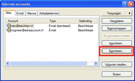 Per e-mailaccount alle instellingen in een iaf-bestand bewaren.