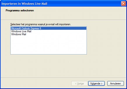 Importeren in Windows Live Mail kan vanuit deze drie e-mailprogramma's.