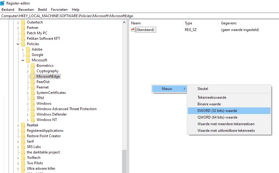 Zoek naar een DWORD met de naam AllowPrelaunch. Als die niet bestaat, moet je hem maken. Klik met rechts in het rechterdeelvenster, selecteer Nieuw DWORD (32-bits)-waarde en noem deze AllowPrelaunch. Dubbelklik op AllowPrelaunch en stel het veld Waardegegevens in op 0 om te voorkomen dat Edge bij het opstarten wordt uitgevoerd. Klik op OK om de wijzigingen toe te passen.