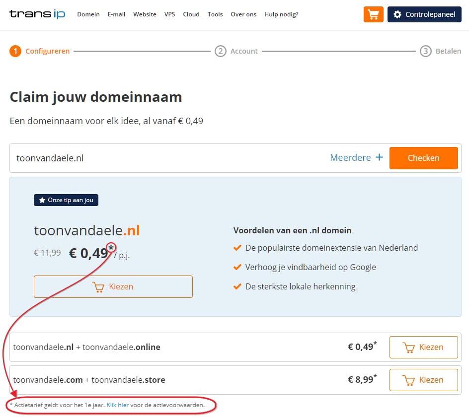 Een domeinregistratie zonder meer kost nauwelijks iets (het eerste jaar) – maar lees wel de contractvoorwaarden erop na.