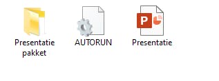 Het bestand AUTORUN.INF laat de presentatie automatisch opstarten wanneer je de stick in een pc stopt. Daarvoor moet je alle bestanden uit deze map naar een volledig lege geheugenstick kopiëren. Die bestanden moeten in de basismap van de stick staan (de hoogste in hiërarchie, ook wel root genoemd), dus niet in een sub-map.