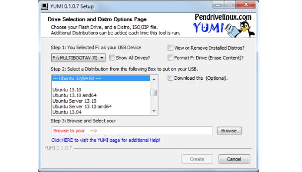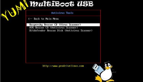 Ook daarin voorziet YUMI. Meer zelfs, je kunt uit tientallen live-distributies kiezen, opgedeeld in diverse rubrieken. Zo tellen we bijvoorbeeld 76 Ubuntu-varianten, 35 systeemtools en 13 antivirustools. En wie heeft nagedacht over de 'M' in YUMI (van Multiboot) heeft wellicht begrepen dat we verschillende distributies op dezelfde stick kwijt kunnen.