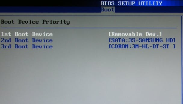 Het valt met name bij wat oudere systemen niet uit te sluiten dat je het BIOS in moet om je pc van een alternatief medium te laten opstarten. Meestal kom je in het BIOS door tijdens het opstarten op de Delete-toets te drukken. Eenmaal binnen ga je op zoek naar een optie om de opstartvolgorde (boot sequence) aan te passen.