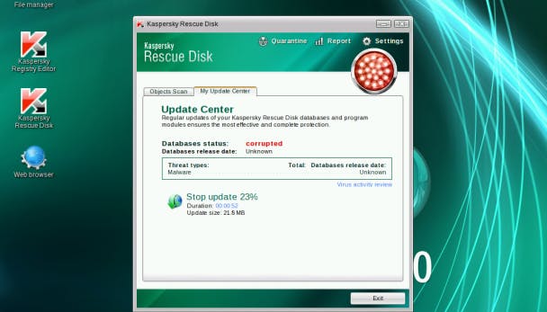 Even later start de tool op in een grafische desktopomgeving. Start hier Kaspersky Rescue Disk op en laat de tool eerst zijn databases updaten, via het tabblad My Update Center. Vervolgens hoeft je enkel de locaties aan te duiden die je wil laten scannen. Dat doe je op het tabblad Object Scan, via de knop +Add.