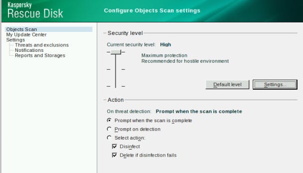 Voor je de scan laat uitvoeren, doe je er goed aan Settings te selecteren. Je kunt hier bijvoorbeeld het beveiligingsniveau verhogen en via de knop Settings duidelijk maken welke bestanden je wil laten scannen. Op het tabblad Additional kun je bovendien de scanmethode selecteren (Signature en/of Heuristic Analysis) en bij de heuristische scan de grondigheid instellen. Verder is het verstandig de optie Prompt when the scan is complete geselecteerd te laten, zodat je zelf kunt beslissen wat er met potentiële malware moet gebeuren: in quarantaine plaatsen, desinfecteren of desnoods verwijderen.