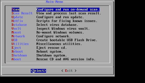 Twee weten meer dan één en dus gebruiken we ook nog AVG. Blijkt de bovenste optie problemen te geven, dan kun je het nog met een van de twee andere proberen (with Disabled Framebuffer en with Resolution Selection). Even later verschijnt dan een menu waar je de eerste optie selecteert: Scan. Stelt AVG een update voor, ga daar dan zeker op in. Kies in dat geval Online / Update from the Internet. Vervolgens geef je aan wat je precies wil laten scannen: specifieke volumes of mappen, de bootsectoren of het Windows-register.