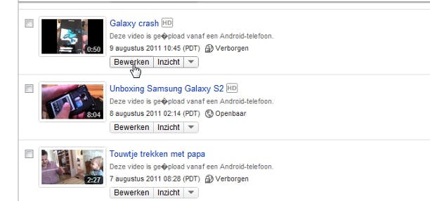 Log in op uw YouTube-account, klik op uw gebruikersnaam en kies Video's. Zoek de video op die u wilt bewerken en klik op de knop Bewerken.
