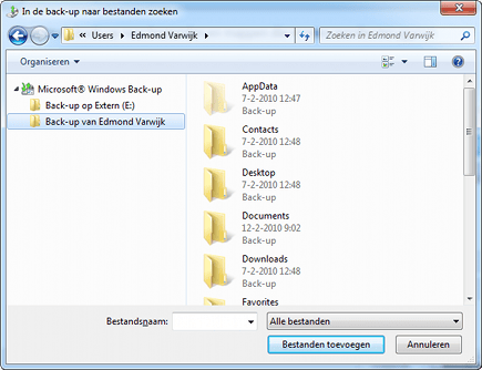 Met Windows Back-up kunt u zowel bestanden als mappen terugzetten.