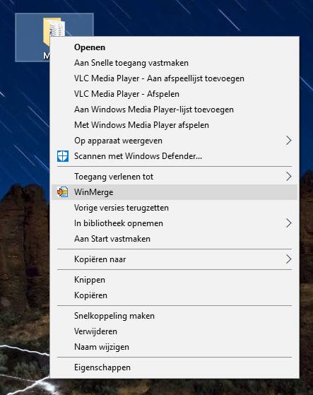 Omdat je tijdens de installatie de integratie met de Windows Verkenner hebt aangevinkt kun je deze vergelijkingstool ook uit de rechtermuisknop halen. Wanneer je een, twee of drie mappen in Windows Verkenner selecteert, kun je de snelkoppeling WinMerge openen. De applicatie vergelijkt meteen de geselecteerde items.