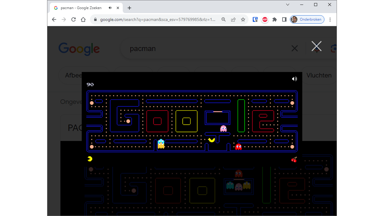 Speelse Google-functies Google heeft veel meer opties dan het sobere uiterlijk in eerste instantie doet vermoeden. De makers hebben zelfs een aantal speelse snufjes in de zoekmachine verstopt. Typ maar eens Do a Barrel roll en klik vervolgens op het eerste resultaat. Na even wachten maakt de internetpagina een heuse looping. Verder werp je met kop of munt een virtueel muntstuk, terwijl je met roll a dice een dobbelsteen laat rollen. Daarnaast bevat Google allerlei eenvoudige spelletjes. Tik hiervoor Pacman, Patience, Snake, Boter, kaas en eieren of Mijnenveger in het zoekveld en klik op Spelen.