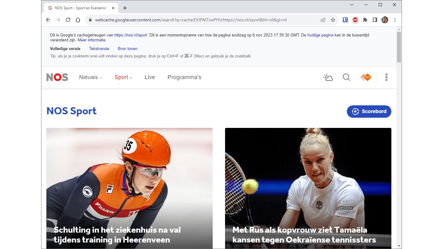 Houd er rekening mee dat de opmaak soms overhoop ligt. Je klikt in dat geval bovenaan op Tekstversie, zodat je alsnog het artikel kunt lezen. Overigens bereik je hetzelfde resultaat door in Google de opdracht cache: te gebruiken. Je vult dan direct na de dubbele punt de juiste url in.