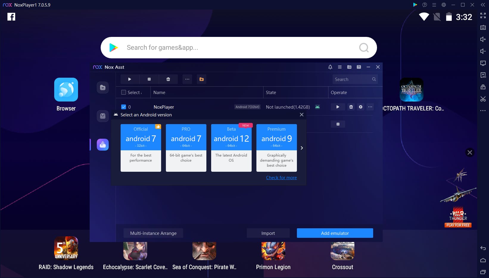 Gelukkig zijn er degelijke en ook gratis alternatieven, zoals LDPlayer en BlueStacks (versie 5). Beide tools – en ook WSA – hebben we al uitgebreid besproken in dit artikel: Android op je computer? Geen probleem! We laten deze emulators hier dus verder onbesproken. Wel willen we nog de populaire tools MEmu Play en NoxPlayer (klik op Reject om ongewenste software te vermijden) vermelden. Beide hebben heel wat instelopties en laten je ook toe meerdere emulaties aan te maken en op te starten. De download van MEmu Play zorgde wel voor een reeks meldingen op VirusTotal. Je gebruikt dit programma dus op eigen risico.