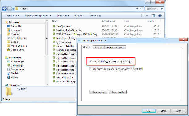 Cloudfogger werkt onder meer met diensten als Dropbox, SkyDrive en Google Drive. Cloudfogger is ook te gebruiken op een usb-stick. Het programma beveiligt uw bestanden 'on the fly' met 256bit-AES-encryptie.