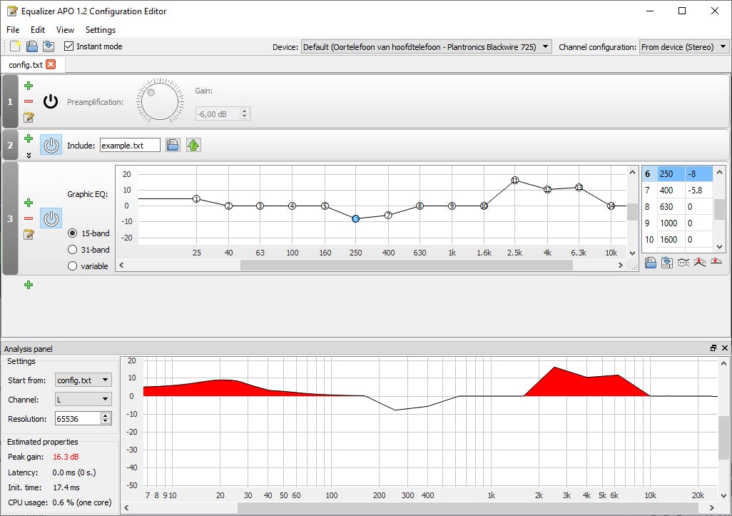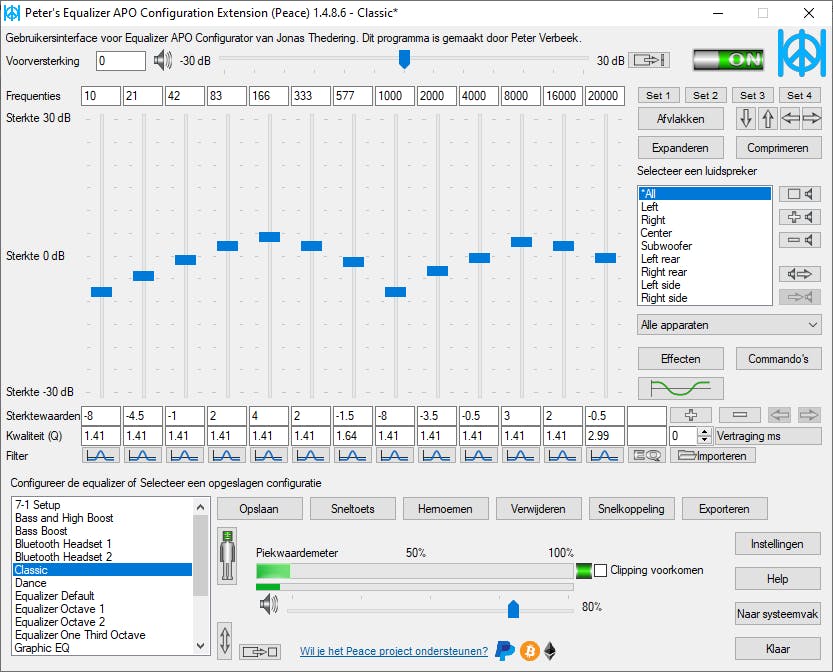 Equalizer APO met Peace Equalizer