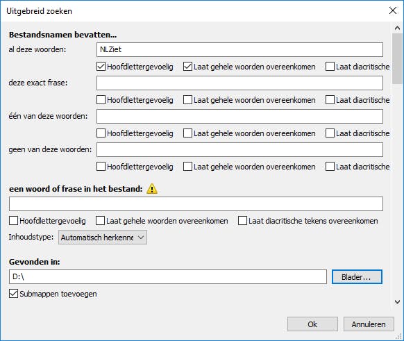- Niet op inhoud zoeken