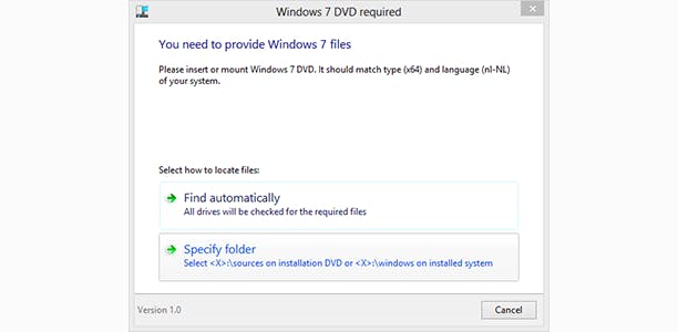 Om Ex7forW8 te installeren heb je de originele Windows 7-installatiebestanden nodig.