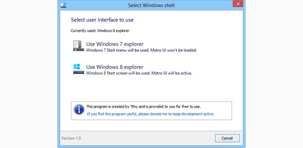 Ex7forW8 geeft je de keuze tussen de Windows 8 of de Windows 7 interface.