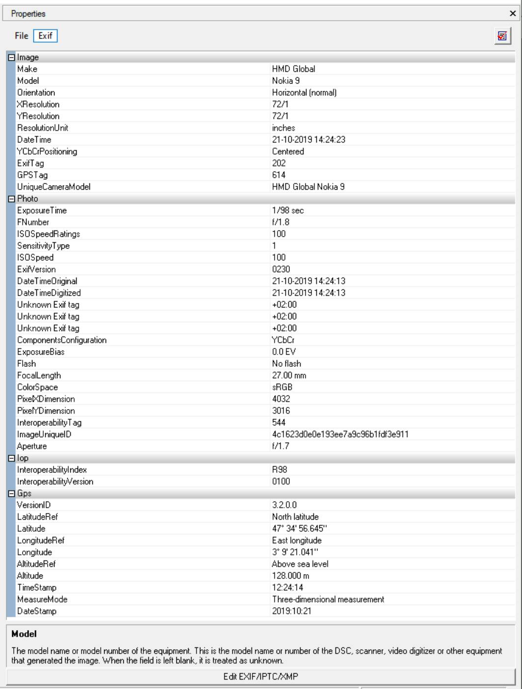 Via Exif kom je te weten welke extra informatie er in het bestand is vastgelegd door het fototoestel of de smartphone. Welke hardware is er gebruikt, wanneer is de foto geschoten, wat is de resolutie, is het een staande of liggende opname, wat is de gps-locatie van de foto enzovoort. Kortom, je komt echt álles over de afbeelding te weten!