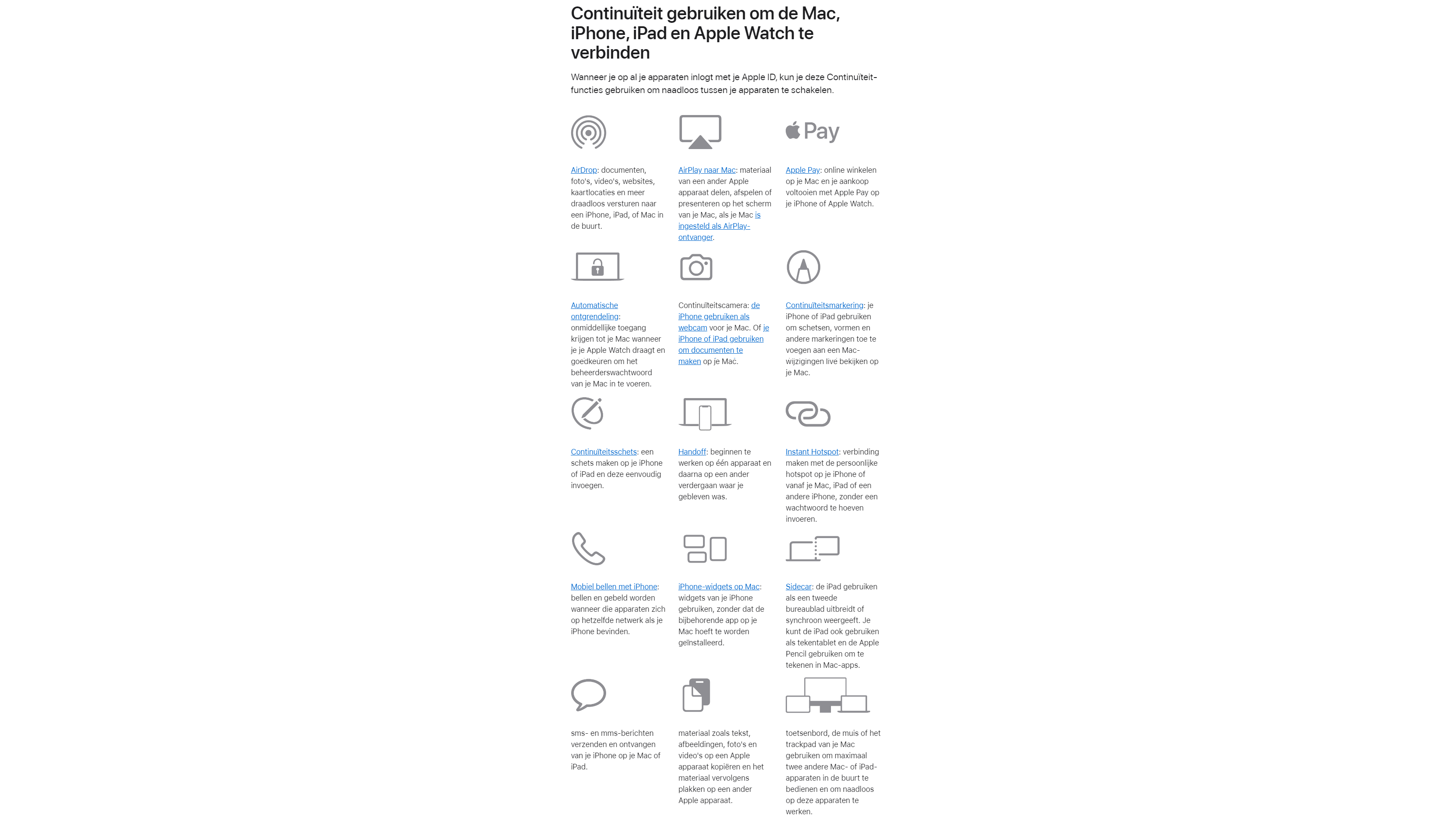 Om te beginnen zijn Apple-producten vaak strak geïntegreerd en werken ze naadloos samen, onder meer dankzij een reeks vernuftige continuïteitsfuncties oftewel integratietechnologieën, exclusief voor Apple-apparaten. Zo is er bijvoorbeeld AirDrop om bestanden snel te delen tussen een iPhone, iPad en Mac, maar ook functies als HandOff, Automatische ontgrendeling, Instant Hotspot, Sidecar en Universeel klembord zijn zeer handig als je meerdere Apple-apparaten in gebruik hebt.