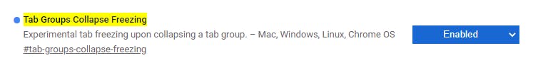 De experimentele vlag Tab Groups Collapse Freezing combineert de twee functies. Het bevriest alle tabbladen binnen de groep als je de tabgroep samenvouwt. Op die manier ben je er ook zeker van dat Chrome geen RAM verbruikt voor inactieve tabbladen.