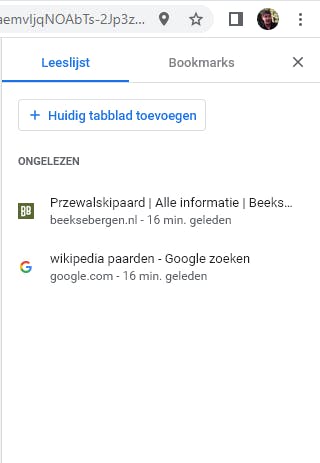 Het tabblad Bookmarks verzamelt alle bladwijzers die je in de Chrome-browser hebt opgeslagen. In de Leeslijst kun je via de knop Huidig tabblad toevoegen de webpagina’s vastleggen die je later wilt lezen. Dat werkt zelfs offline. Deze pagina’s verschijnen eerst in de groep Ongelezen, tot je ze markeert als gelezen.