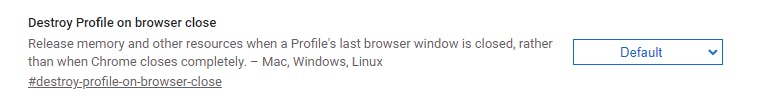 De vlag Destroy Profile on browser close verwijdert de ongebruikte profielen uit het werkgeheugen van de computer, zodat deze systeembronnen opnieuw vrijkomen, met een snellere browser tot gevolg.