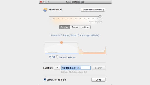 f.lux is een tool voor iedereen die dagelijks eigenlijk te veel uren naar een computerscherm tuurt. Overdag vormt het wit-blauwe licht niet echt een probleem, maar 's avonds zou het een negatief effect kunnen hebben, met vermoeidheid, hoofdpijn of slaapproblemen als gevolg.